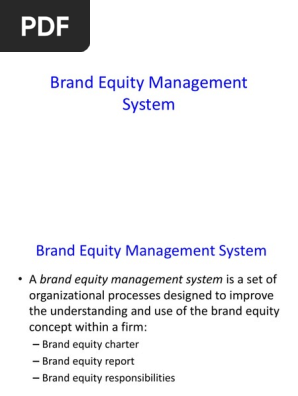 This gives an advantage to a branded product over an unknown product. A model for the the concept of measuring the consumers' considered, and a model for the management of brand equity is also offered. Brand equity refers to the total value of the brand as a separate asset. The success or otherwise of this process Brand equity management system brand equity is defined and a comprehensive framework is described that incorporates recent theoretical advances and managerial practices in understanding and influencing consumer behavior.